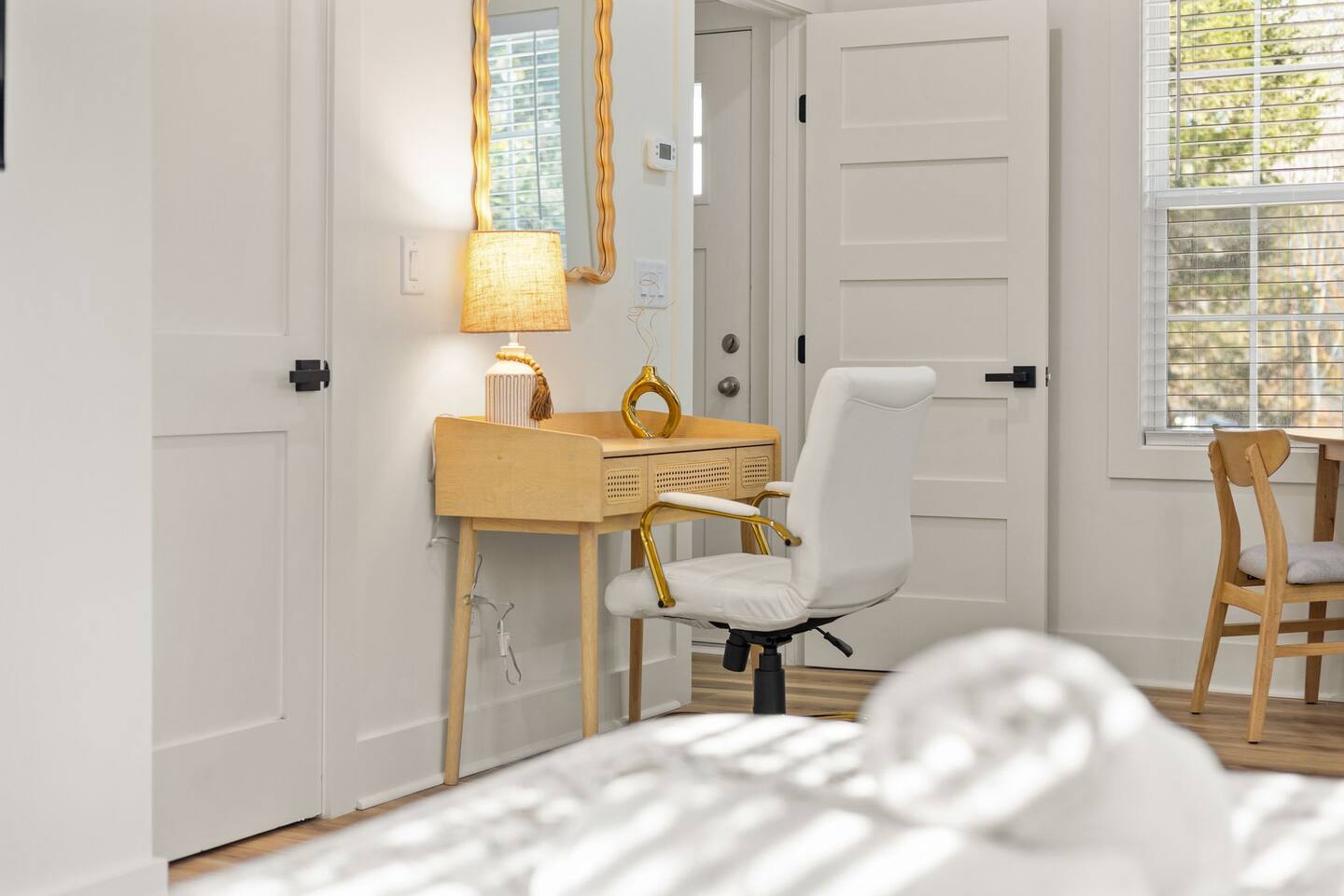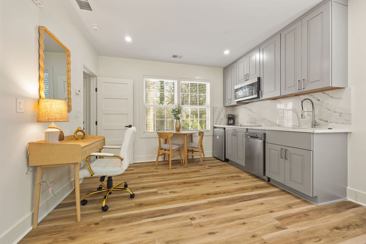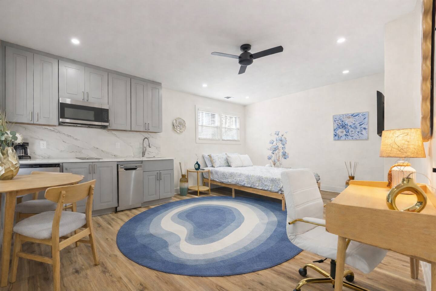 → Private studio layout ideal for solo travelers or couples → Comfortable sleeping area with cozy bedding → 1 full bathroom with essentials provided → Convenient kitchenette → Dining/work table perfect for remote work or meals → High-speed Wi-Fi for streaming and work → Smart TV for entertainment → Self check-in for flexible arrival → Street parking → Quiet residential property ideal for short or extended stays
